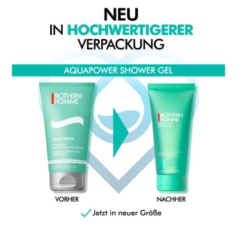 Entdecken Sie das neue Aquapower Duschgel von Biotherm Homme jetzt in neuem Design und in neuer Größe. Aquapower Duschgel – hoch effizientes Duschgel mit dem angenehmen und bekannten Duft von Aquapower. Tiefenwirksame und effiziente Reinigung der Haut für ein sofortiges Frischegefühl für Körper und Haar.