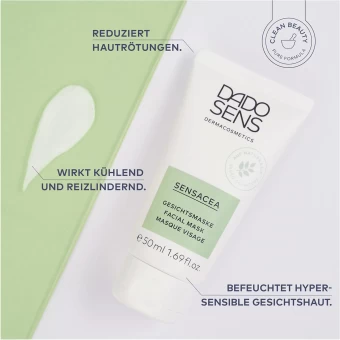 Die Gesichtsmaske verwöhnt und befeuchtet hypersensible Gesichtshaut mit Neigung zu Couperose bis hin zu ersten Anzeichen auf Rosacea. Mildert leichte bis mittlere Rötungen, kühlt und sorgt so dafür, dass die Haut sich weniger heiß anfühlt. Die hochwirksamen Pflegestoffe Süßholz, Aloe Vera und Purpur-Rotalge besänftigen die irritierte Haut bei regelmäßiger Anwendung nachhaltig für ein angenehmeres Hautgefühl. Vegan.