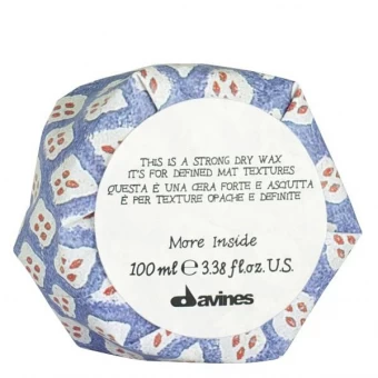 More Inside ist eine Reihe spezifischer, dennoch vielseitiger Produkte, die einzeln oder gemischt und im Verbund eingesetzt werden können. Sie verbessern die Qualität von Styling und Finish. Jedes Produkt spendet dem Haar Feuchtigkeit und sorgt für einen lang anhaltenden Effekt. Das Ergebnis sind definierte, elastische Haare ohne Produktrückstände. Die Formeln sind das Resultat der wissenschaftlichen Erkenntnisse der Davines Labore.