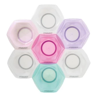 Dieses Set aus 7 Färbeschalen in schönen Pastelltönen besteht aus rutschfesten und stoßfestem Material. Jede einzelne Schale rastet in die nächste ein und schafft somit eine stabile Oberfläche. Jede Färbeschale fasst 250 ml.