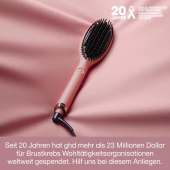 ghd pink collection. In den letzten 20 Jahren hat ghd weltweit mehr als 23 Millionen Dollar für Brustkrebsorganisationen gesammelt und engagiert sich weiterhin dafür, Jahr für Jahr weitere Spenden zu generieren. Das Abtasten der Brüste ist für alle Frauen wichtig, denn Früherkennung rettet Leben. Deshalb wurde die exklusive ghd glide Hot Brush so entwickelt, dass sie mit ‘Take Control Now’ eine Erinnerung an das regelmäßige Abtasten enthält. Die Limited Edition enthält die ghd pink glide Hot Brush in Mid Peach Pink zusammen mit einem farblich passenden Hitzeschutz-Etui.*