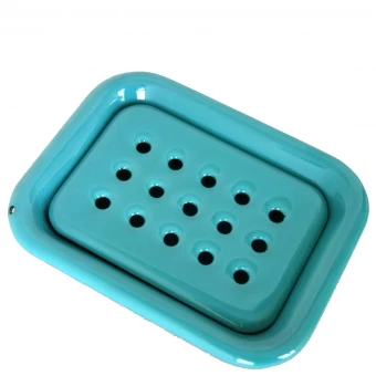 Klar‘s Seifenschale aus Email in leuchtendem Türkis ist ein farbenfroher Blickfang in Ihrem Badezimmer. Das widerstandsfähige und langlebige Email ist in Deutschland gefertigt. Dank des integrierten Abtropfgitters weicht die Seife nicht auf.