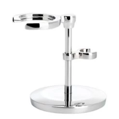 Halter für MÜHLE Rasierset, passend für Rasierhobel R89, R106, R41, R101, sowie Rasierpinsel 31M89, 31M106, aus solidem Messing, hochglanz verchromt.