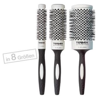 - Bürstenkörper Teflon-beschichtet. Verteilt die Warmluft des Haartrockners gleichmäßig. Verhindert Rückstände von Produkten.