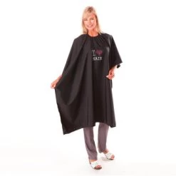 100 % Polyester, wasserdicht. Mit Hakenverschluss. Größe 120 x 140 cm.